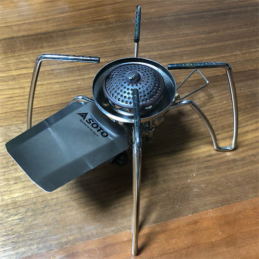 洗練されたデザインや安定した火力が好評で、CB缶を使用できる点も評価を得ていました。一方で点火のし難さや使用後の五徳が熱くて撤収までに時間がかかるといったデメリットも多い印象です。実際私も愛用していますが、4本足で安定感があり予想以上に調理がしやすく、マイクロレギュレーターの効果も実感できる素晴らしいバーナーです。四つ足が生物的で可愛く見えてくるところもポイントです!点火のし難さは手の大きさによるところが大きい印象なので、男性の方はアシストレバーも購入したほうが良いでしょう。五徳と足が一体なので当然足も熱くなりますが、忘れていて何度かやけどしてしまいましたのでアシストグリップは必須です。